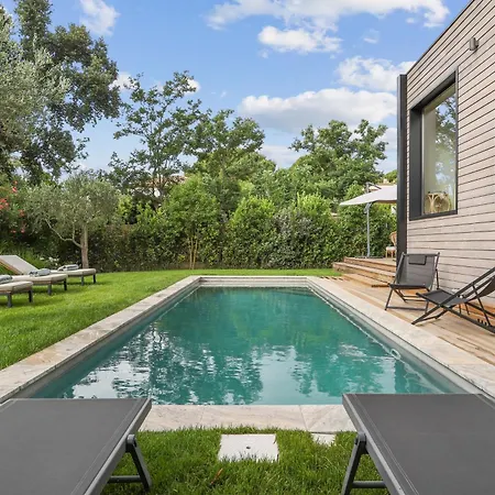Les Hauts De Bonporteau - Nr 29 Villa is set in Cavalaire-sur-Mer, 15 minutes' stroll from Plage De Bonporteau and boasts a swimming pool provided on a terrace. The venue has 1 bedroom, a patio, a balcony, and a sofa and a fully-fitted kitchen that provides guests with a microwave oven, a fridge, and kitchenware.